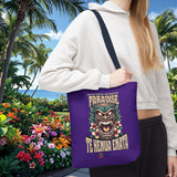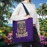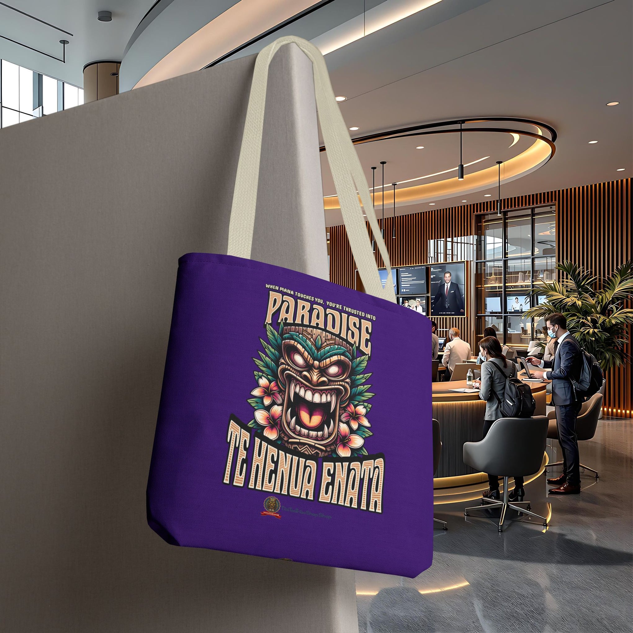 Emportez la beauté profonde et l'esprit des Marquises avec le Tote Bag 'TE HENUA ENATA PARADISE' Violet Impérial de TIKI TOA TRIBE SHOP. Votre paradis personnel, avec une touche de mystère et de noblesse, vous attend !