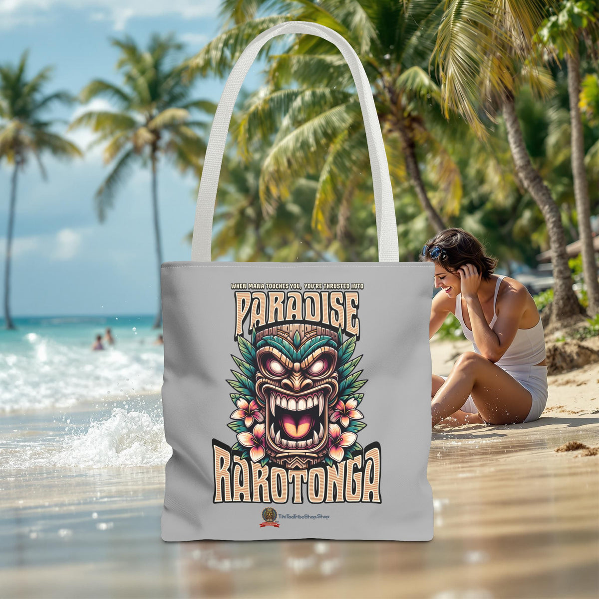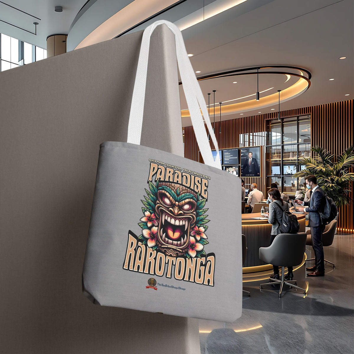 Apportez la magie décontractée de Rarotonga à votre style. Adoptez le Tote Bag 'RAROTONGA PARADISE' de TIKI TOA TRIBE SHOP et vivez une évasion permanente.