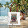 Rarotonga est l'île principale de l'archipel des îles Cook, un véritable joyau niché au cœur du Pacifique Sud. Elle est réputée pour ses volcans verdoyants, ses plages idylliques, ses lagons d'un bleu saisissant et l'hospitalité de ses habitants. Le Tiki présent sur ce tote bag est une figure emblématique de la culture maorie et polynésienne, souvent vénérée comme un protecteur ou une incarnation des ancêtres. L'association du motif camouflage (souvent symbole de discrétion) avec ce design tropical vibrant est une invitation humoristique à "se camoufler" dans la beauté luxuriante de Rarotonga, emportant un morceau de ce paradis partout avec soi.