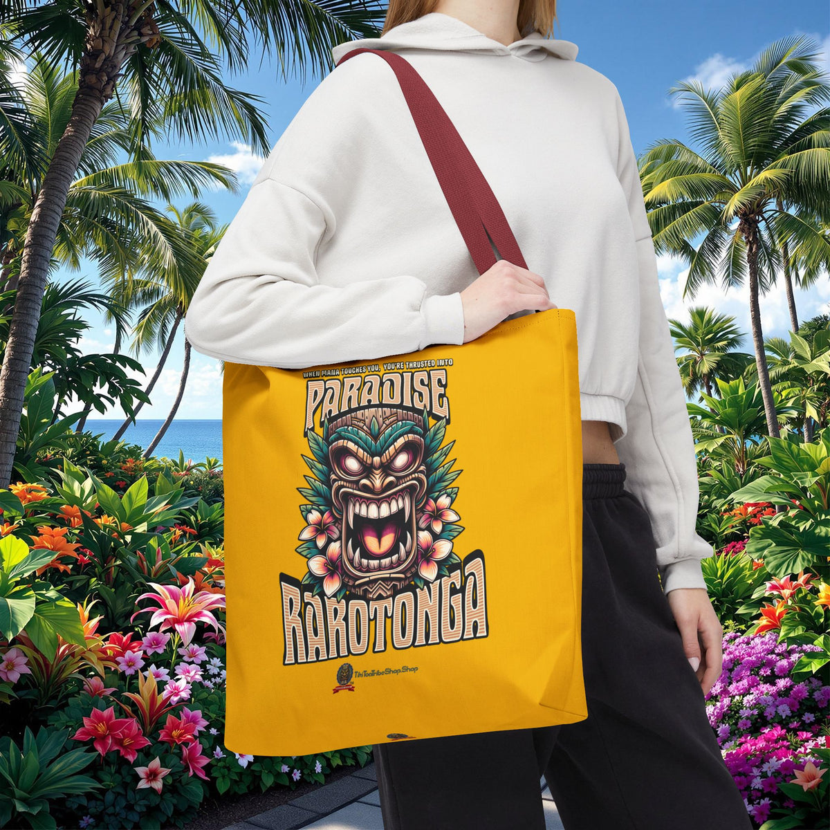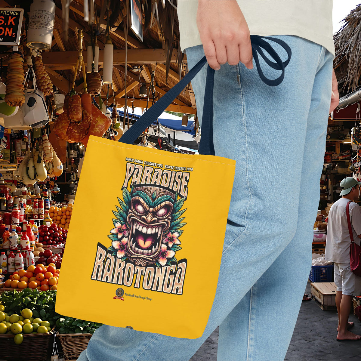 Apportez la magie décontractée de Rarotonga à votre style. Adoptez le Tote Bag 'RAROTONGA PARADISE' de TIKI TOA TRIBE SHOP et vivez une évasion permanente.
