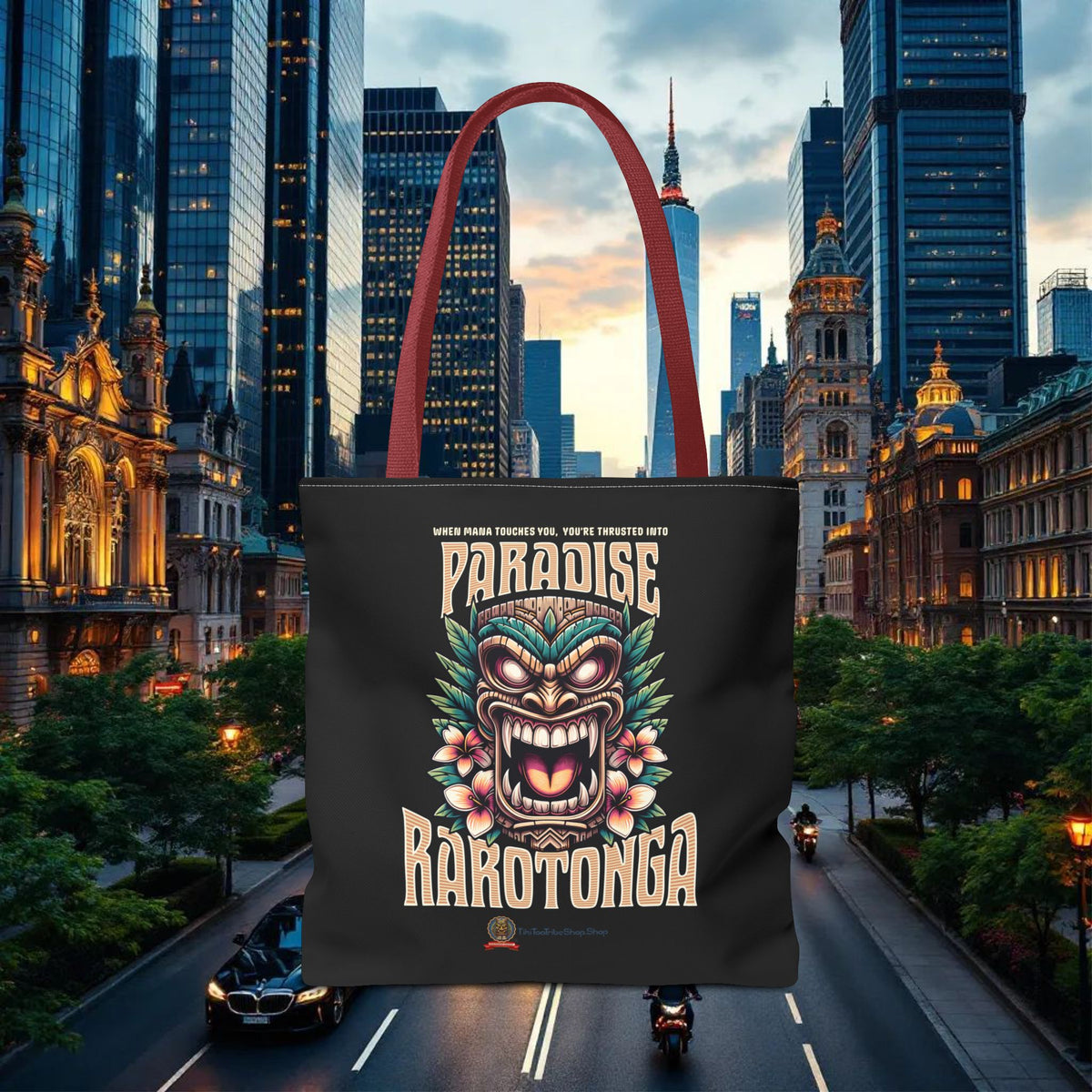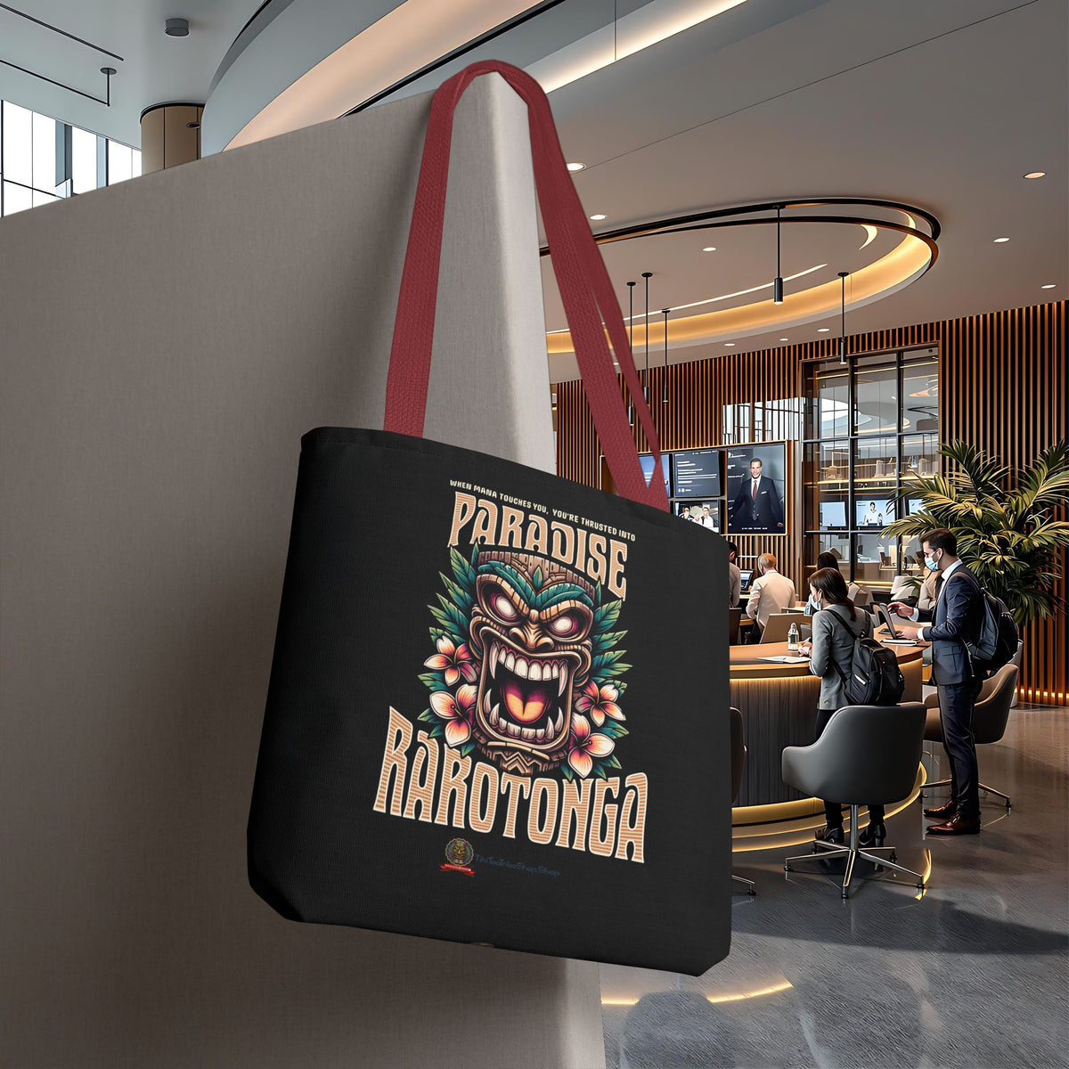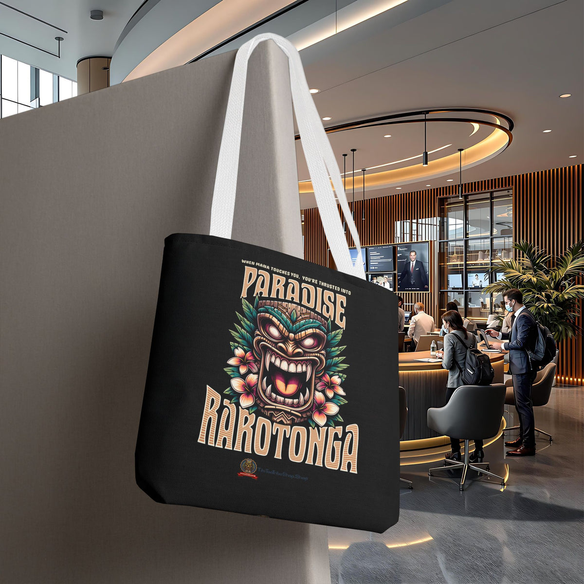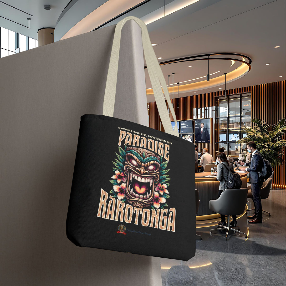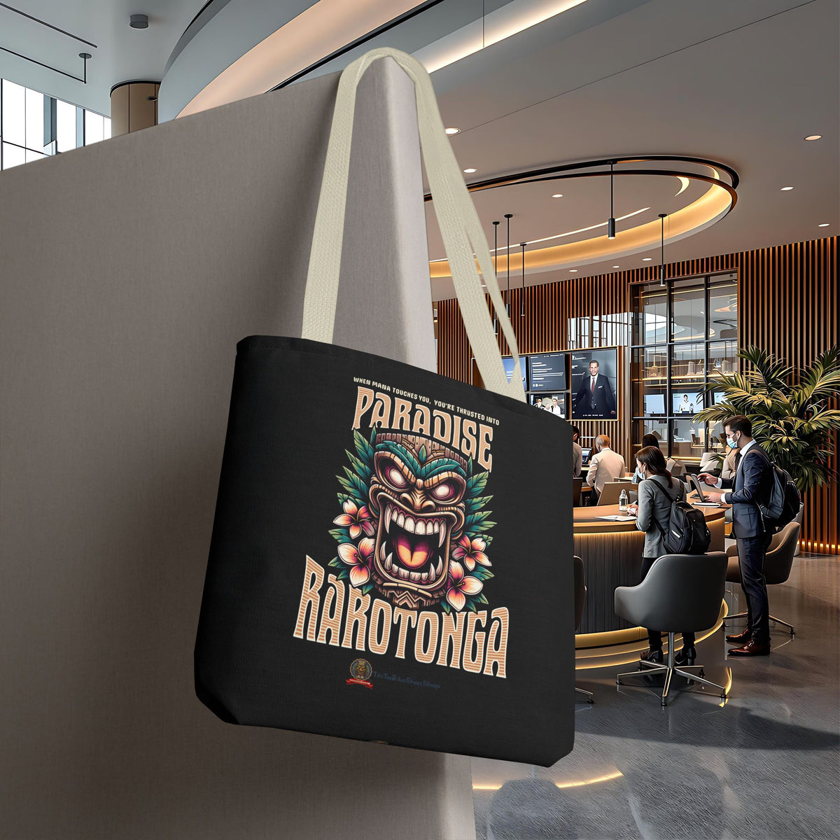 L'esprit des îles Cook vous appelle ! Découvrez le Tote Bag 'RAROTONGA PARADISE' de TIKI TOA TRIBE SHOP, votre nouveau complice pour transporter un fragment de paradis partout où vous allez. Ce sac fourre-tout unique est une célébration de la beauté tropicale et de la culture polynésienne.
