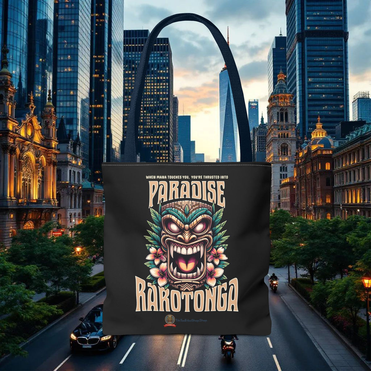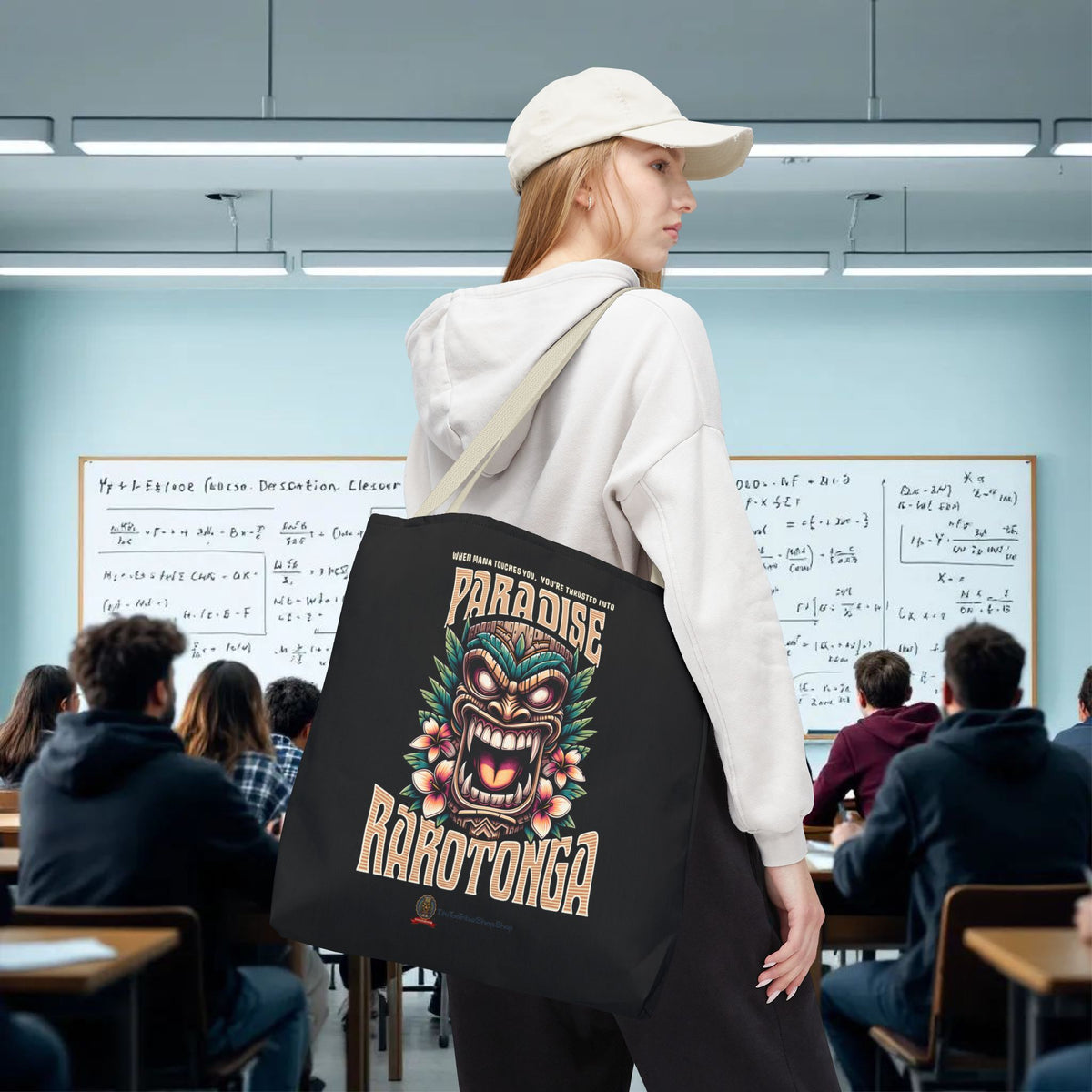 Apportez la magie décontractée de Rarotonga à votre style. Adoptez le Tote Bag 'RAROTONGA PARADISE' de TIKI TOA TRIBE SHOP et vivez une évasion permanente.