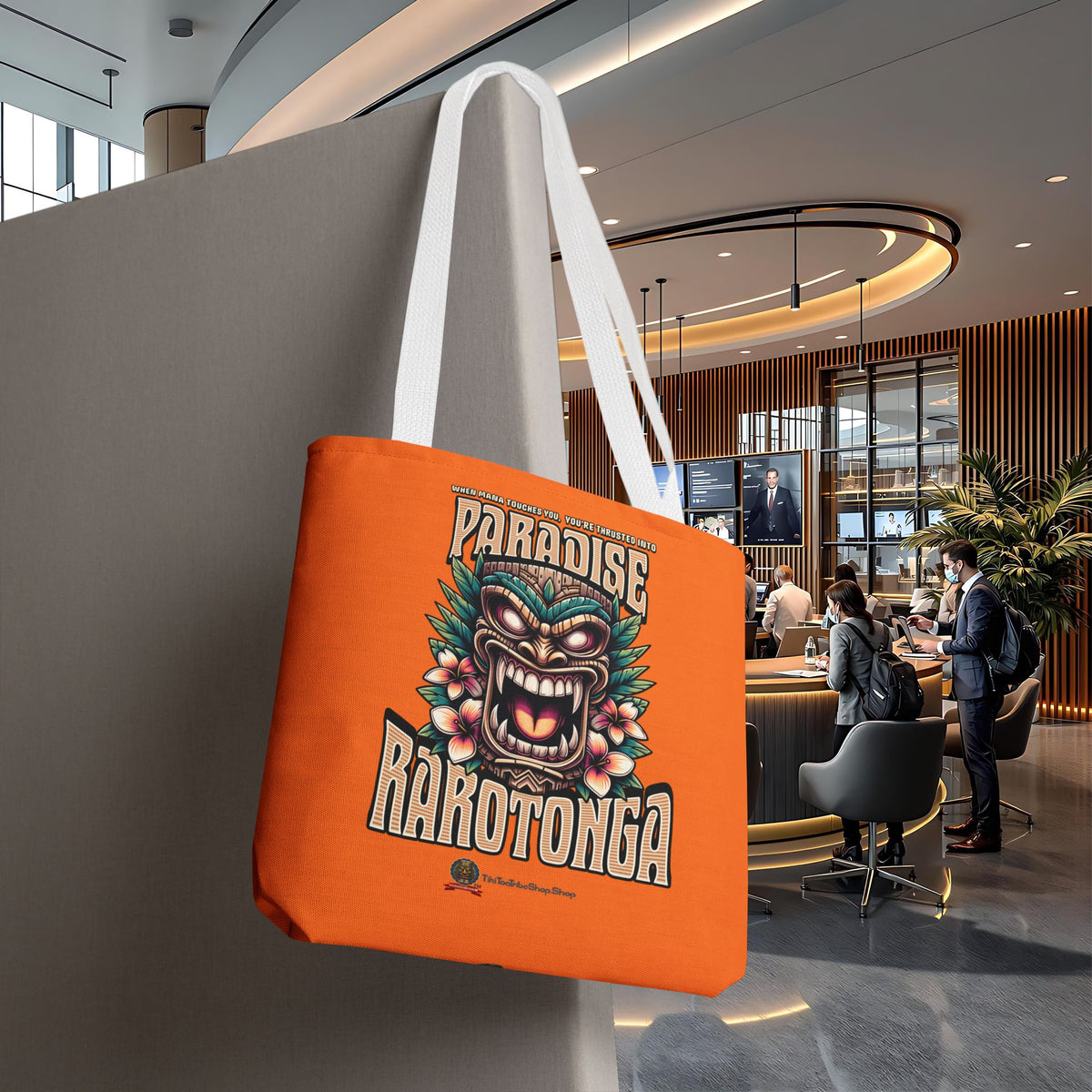 L'esprit des îles Cook vous appelle ! Découvrez le Tote Bag 'RAROTONGA PARADISE' de TIKI TOA TRIBE SHOP, votre nouveau complice pour transporter un fragment de paradis partout où vous allez. Ce sac fourre-tout unique est une célébration de la beauté tropicale et de la culture polynésienne.