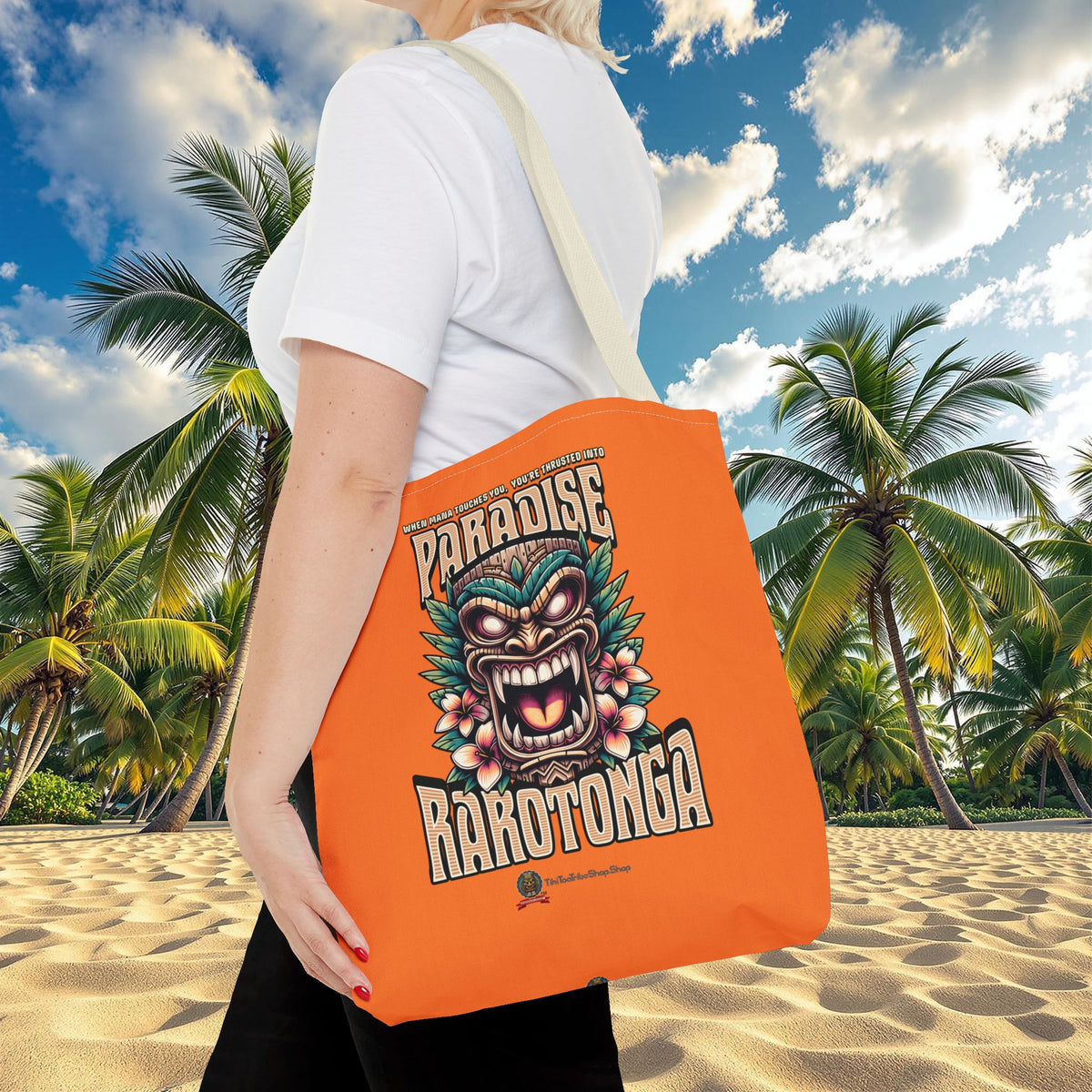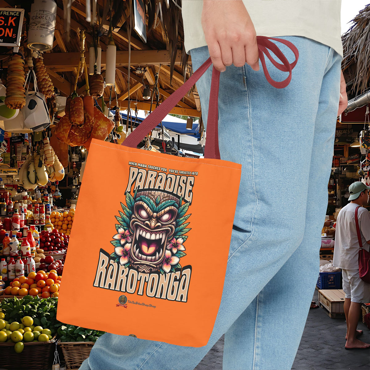 Apportez la magie décontractée de Rarotonga à votre style. Adoptez le Tote Bag 'RAROTONGA PARADISE' de TIKI TOA TRIBE SHOP et vivez une évasion permanente.