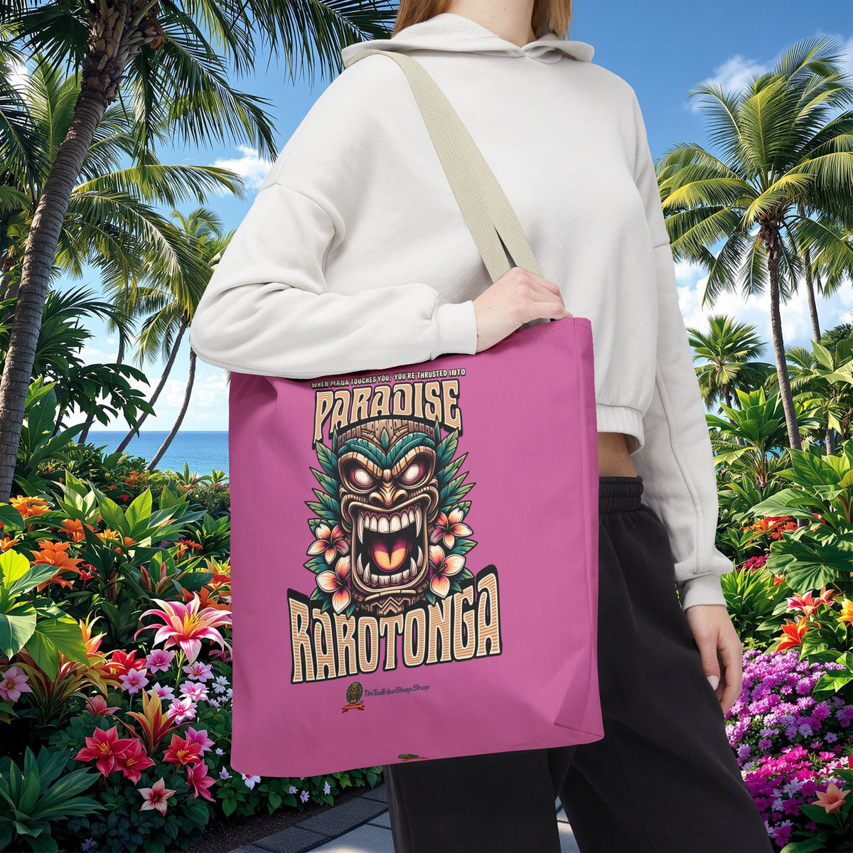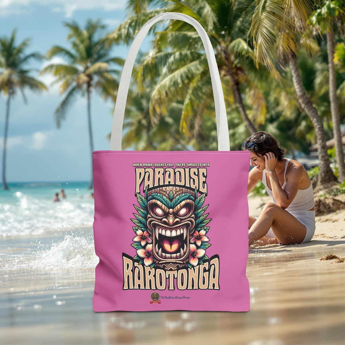 Apportez la magie décontractée de Rarotonga à votre style. Adoptez le Tote Bag 'RAROTONGA PARADISE' de TIKI TOA TRIBE SHOP et vivez une évasion permanente.
