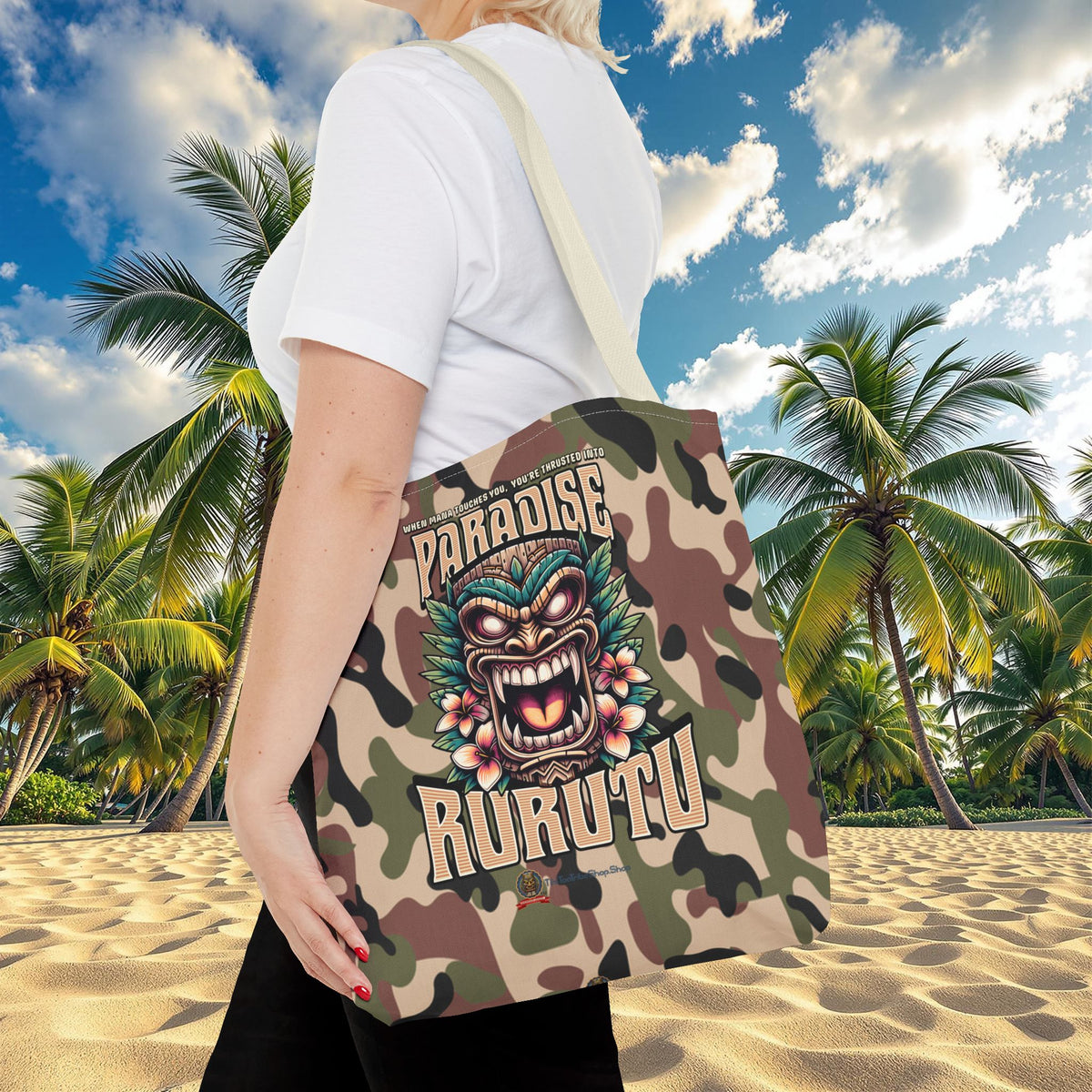 Évadez-vous au cœur du Pacifique avec notre tote bag "Rurutu Paradise" exclusif, une création TIKI TOA TRIBE SHOP qui capture l'essence mystique et la beauté luxuriante de l'île de Rurutu.