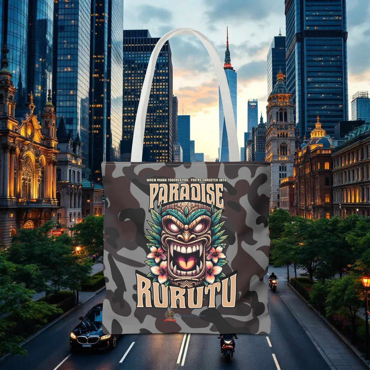 Évadez-vous au cœur du Pacifique avec notre tote bag "Rurutu Paradise" exclusif, une création TIKI TOA TRIBE SHOP qui capture l'essence mystique et la beauté luxuriante de l'île de Rurutu.