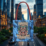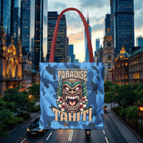 Ce sac est une invitation à rêver de couchers de soleil tahitiens et de l'hospitalité légendaire du Pacifique. Adoptez le tote bag "Paradise Tahiti" et emportez un peu de ce paradis avec vous, où que vous alliez.  "Vagues & Volcans" – L'Essence de l'Île Reine | TIKI TOA TRIBE SHOP.