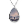 • This pendant depicts a female silhouette walking away towards a building illuminated in a soft morning or evening mist.