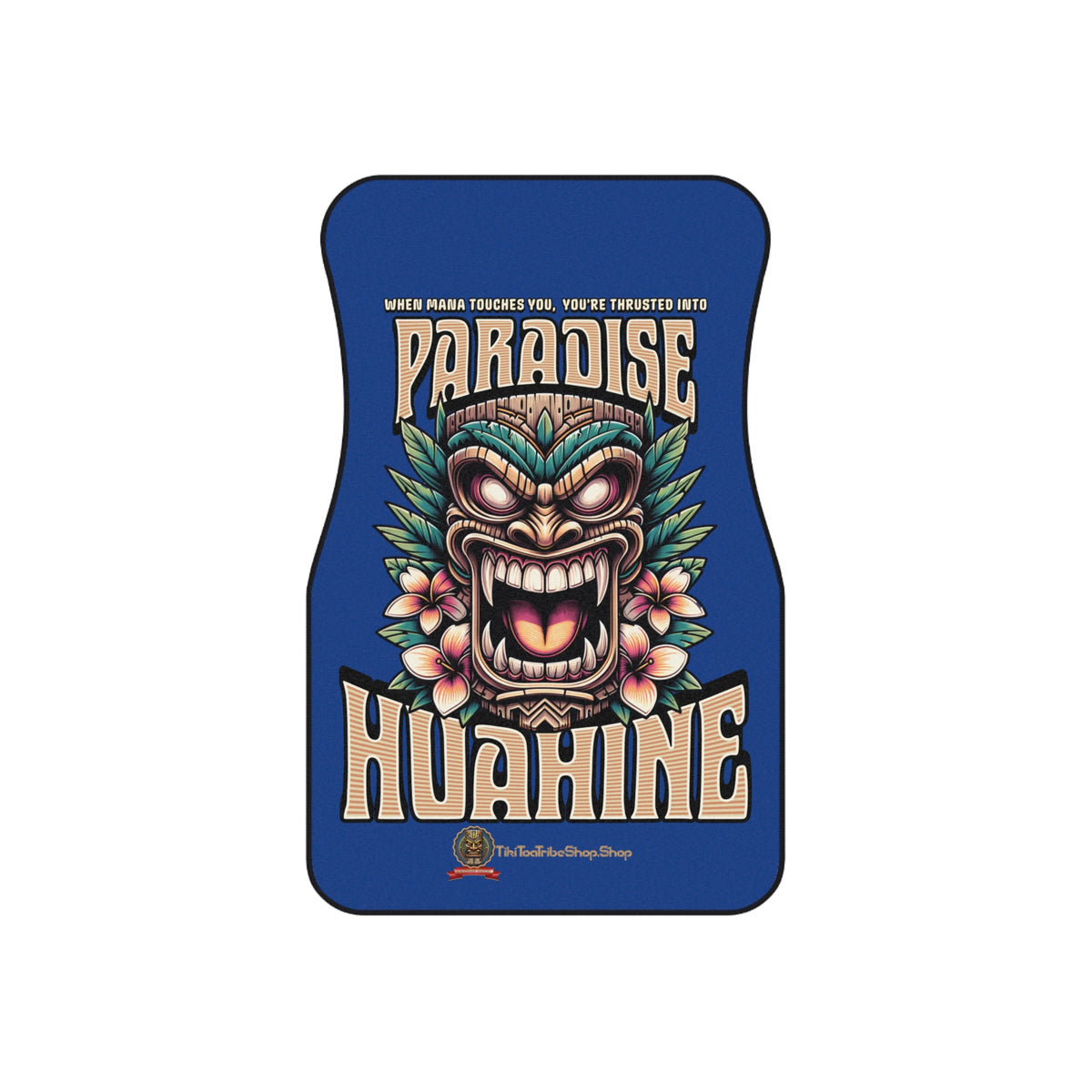 “Huahine” inscription in stylized letters, paying homage to the wild and mystical island with enchanting landscapes.