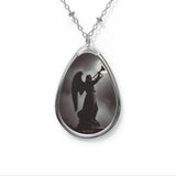 • Elegant elliptical pendant with a shiny surface, highlighting the celestial silhouette of the Angel Moroni under the full moon.