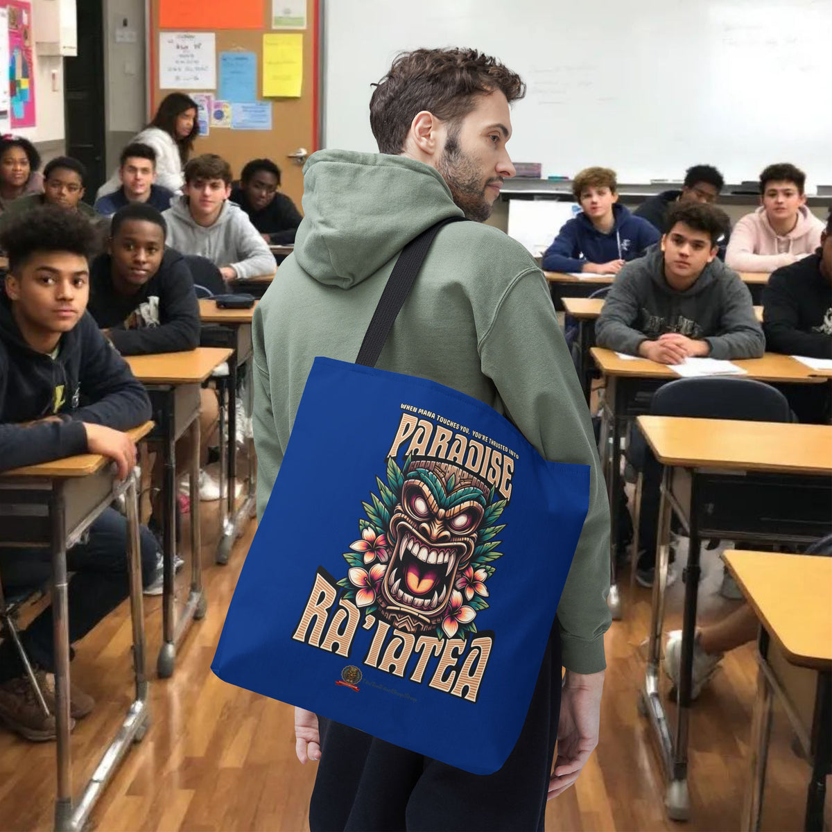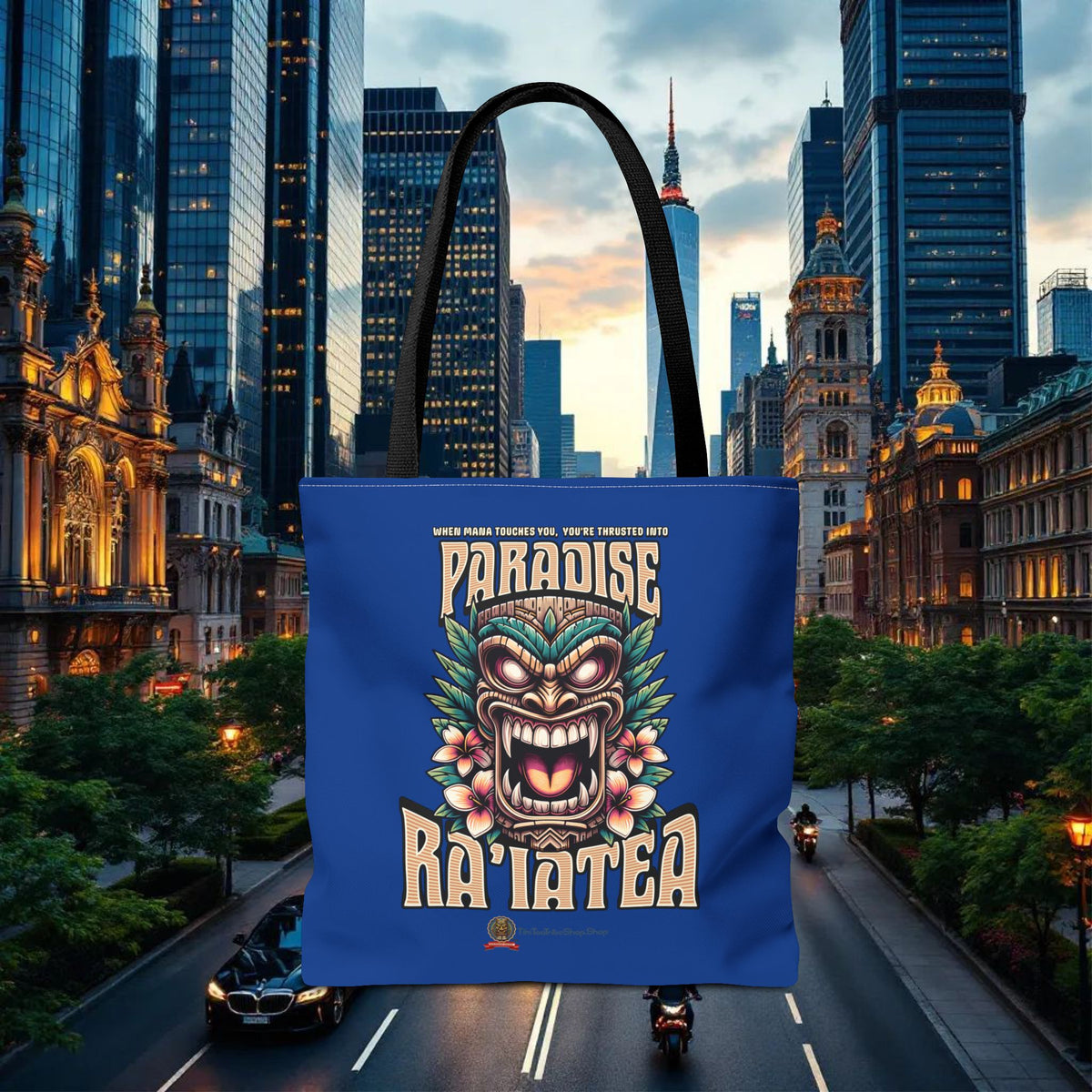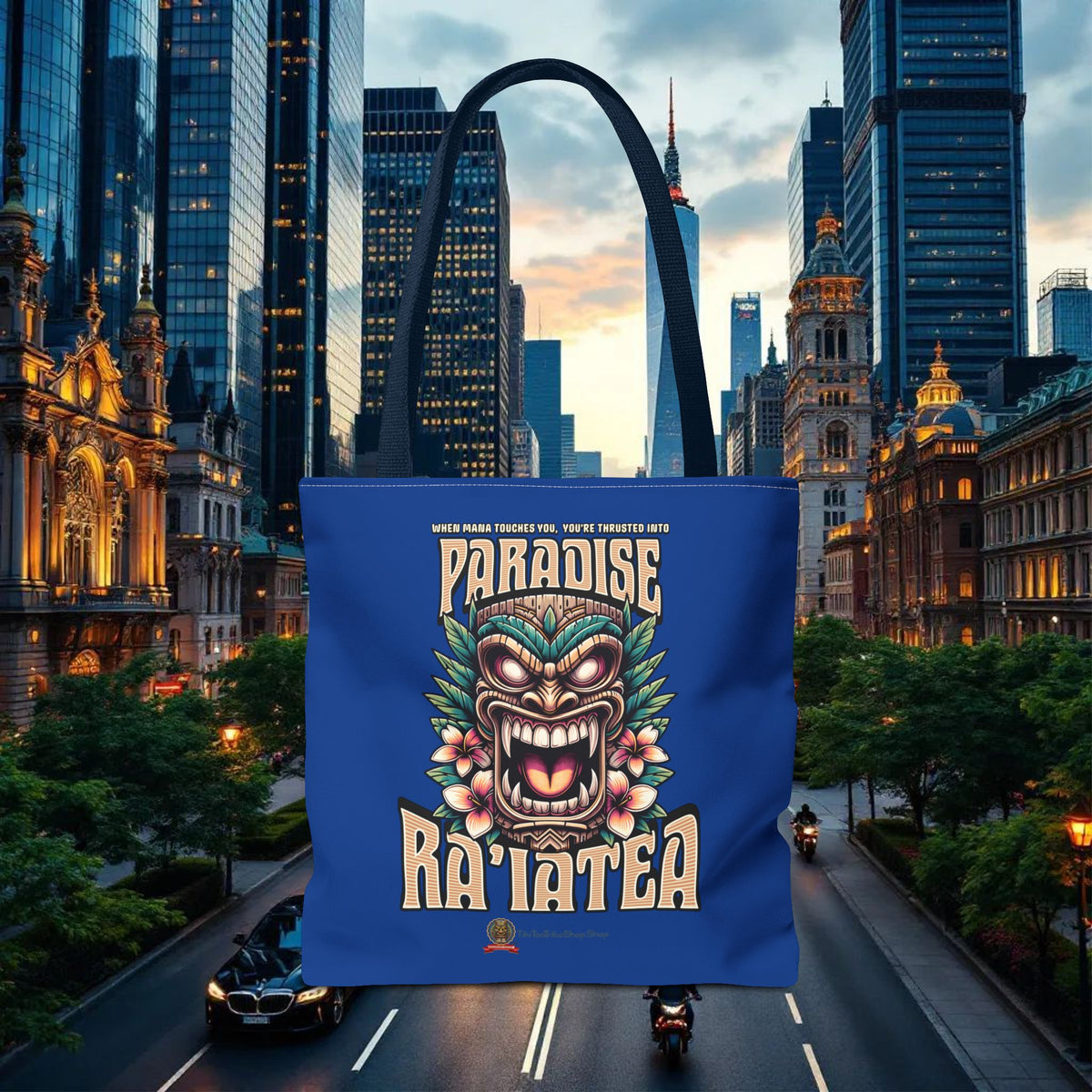 Elevate your style with our 'RA'IATEA PARADISE' Tote Bag , a vibrant tribute to the Sacred Island of French Polynesia. Ra'iatea is much more than just an island; it is the cradle of Polynesian civilization and the mythical starting point of the great migrations that populated the Pacific.