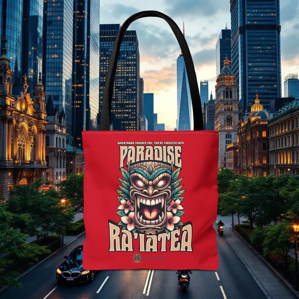 Elevate your style with our 'RA'IATEA PARADISE' Tote Bag , a vibrant tribute to the Sacred Island of French Polynesia. Ra'iatea is much more than just an island; it is the cradle of Polynesian civilization and the mythical starting point of the great migrations that populated the Pacific.