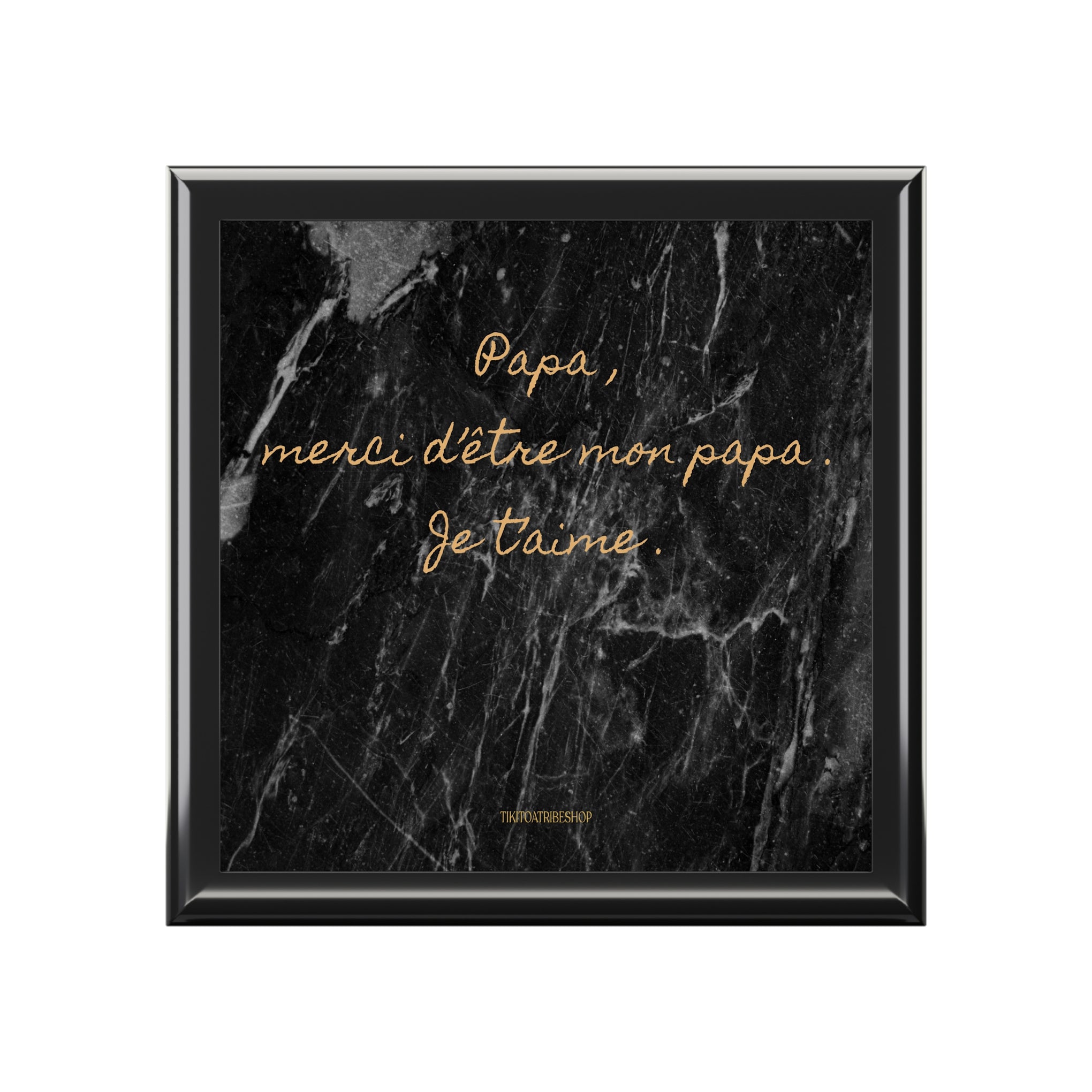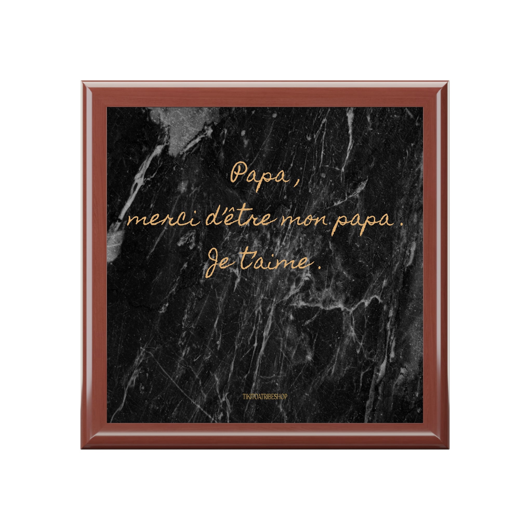 Autrefois symbole de transmission, la boîte à bijoux est aujourd’hui un objet chargé d’émotion. Chez TIKI TOA TRIBE SHOP, elle devient un véritable message d’amour, pensé pour dire “je t’aime”, célébrer la famille et exprimer tout l’amour porté à son papa. Un objet utile, beau et plein de sens, à garder près de soi chaque jour.