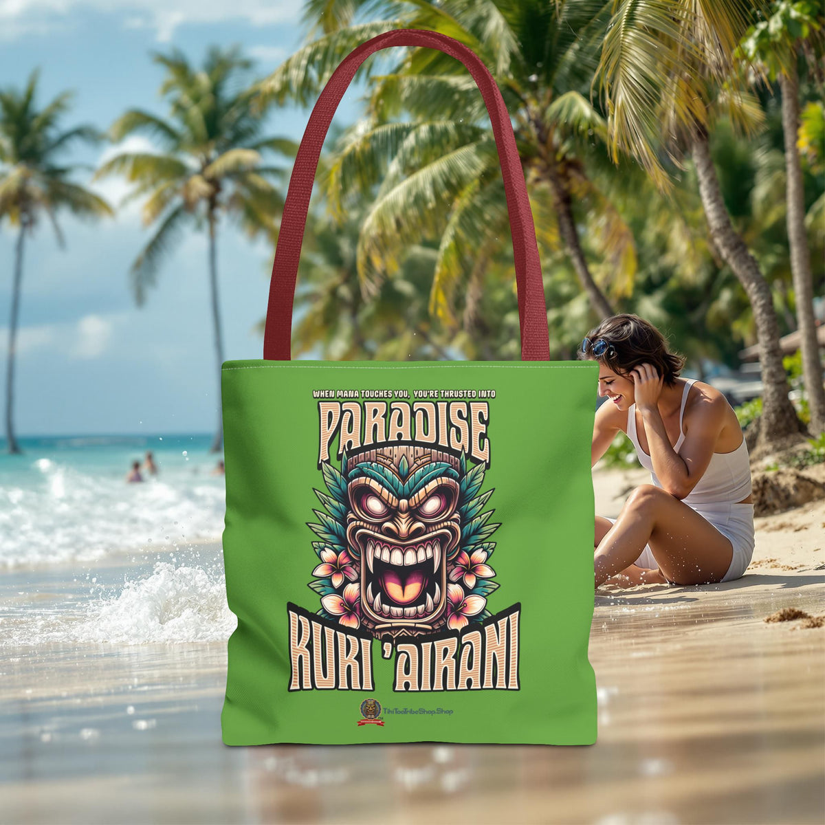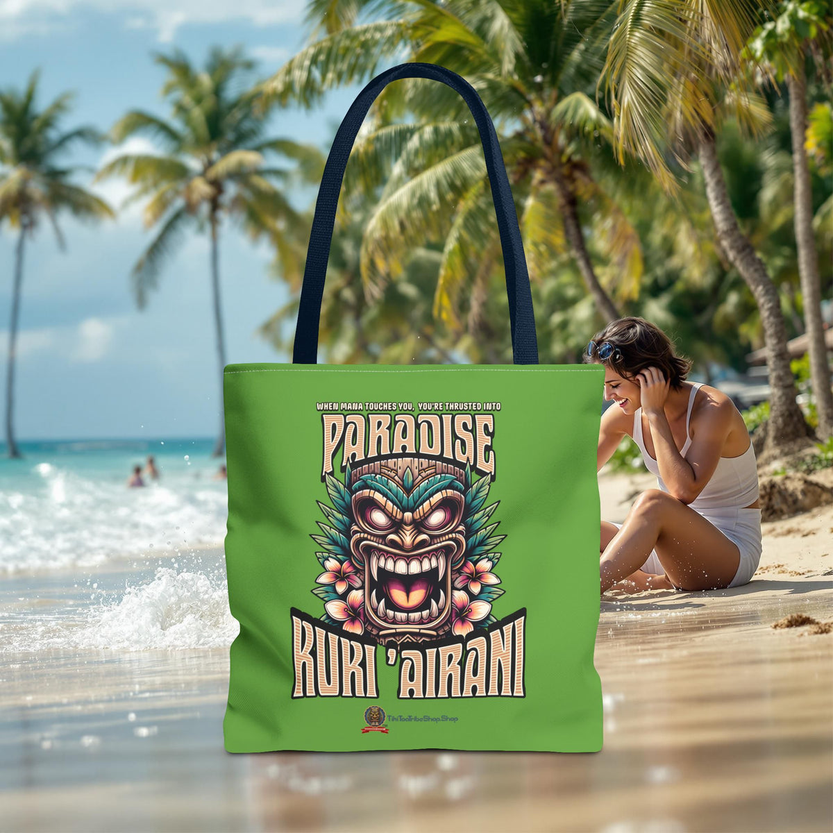 Bring the vitality and beauty of the Cook Islands into your everyday life. Adopt the 'KUKI AIRANI PARADISE' Tote Bag from TIKI TOA TRIBE SHOP and experience the authenticity of the Pacific.