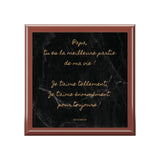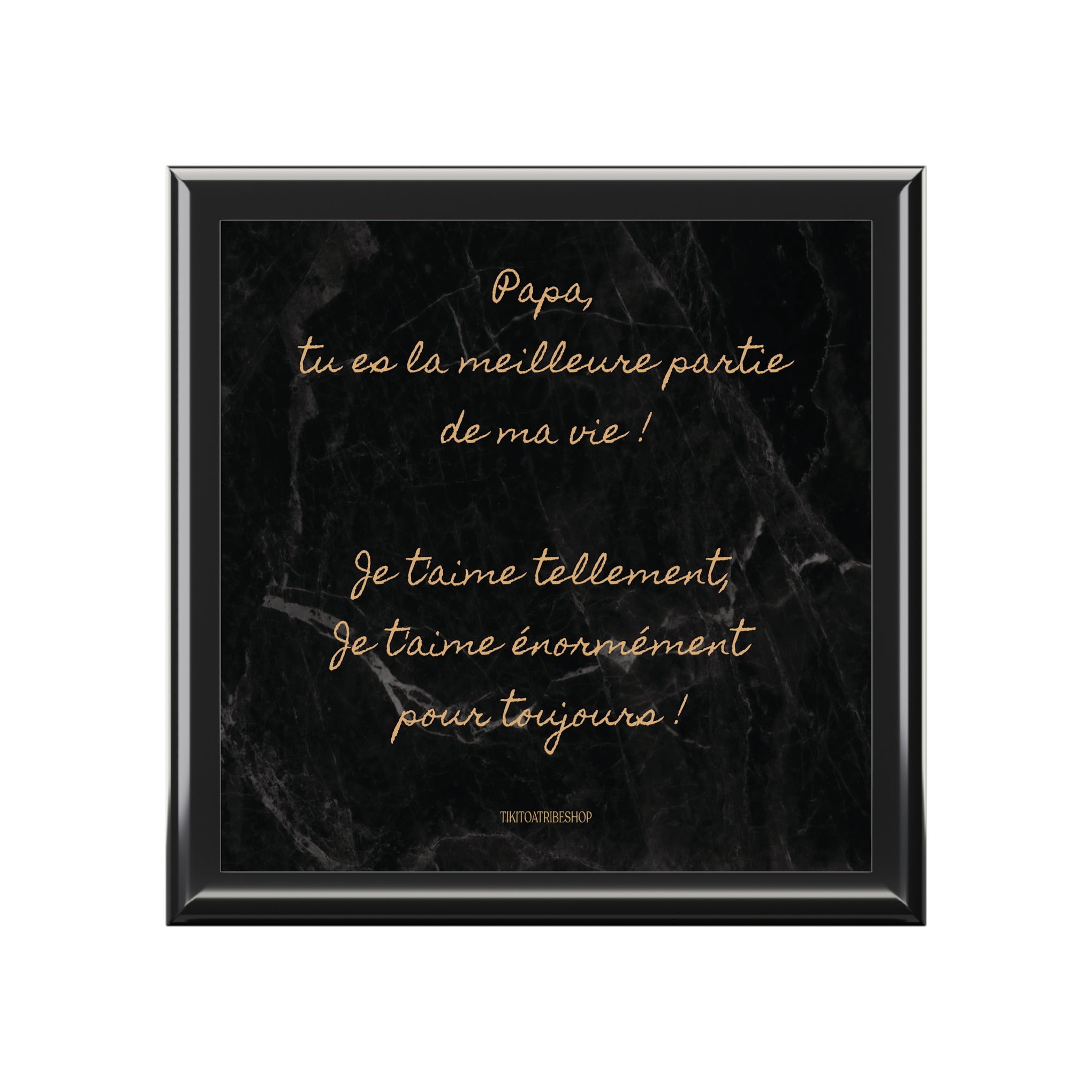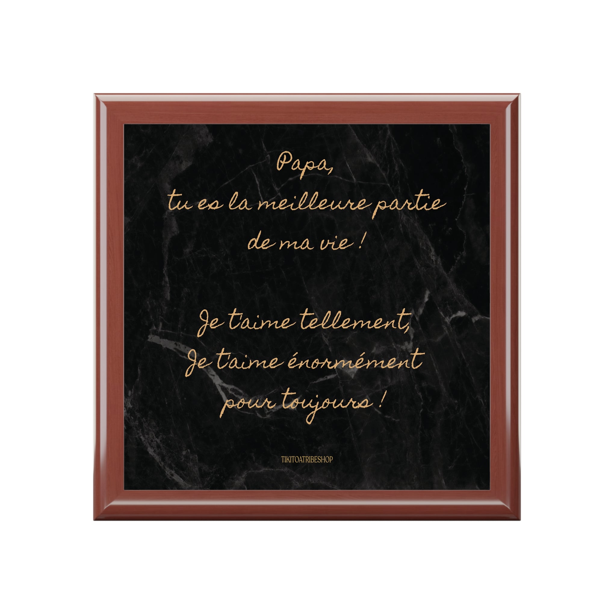 Parce qu’un papa mérite plus qu’un simple cadeau. Ce coffret à bijoux est un véritable message d’amour, un souvenir précieux qu’il gardera près de lui chaque jour. Élégant, solide et chargé d’émotion, il peut accueillir montres, bijoux, petits trésors personnels ou même ses médicaments du quotidien, toujours à portée de main. À chaque ouverture, c’est un sourire, une pensée tendre, un rappel silencieux qu’il est aimé et qu’il compte énormément. Un cadeau intemporel, utile et profondément touchant, parfait pour célébrer un papa unique et irremplaçable.