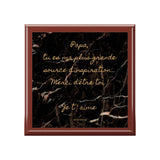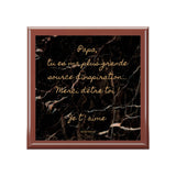 Parce qu’un papa mérite plus qu’un simple cadeau. Ce coffret à bijoux est un véritable message d’amour, un souvenir précieux qu’il gardera près de lui chaque jour. Élégant, solide et chargé d’émotion, il peut accueillir montres, bijoux, petits trésors personnels ou même ses médicaments du quotidien, toujours à portée de main. À chaque ouverture, c’est un sourire, une pensée tendre, un rappel silencieux qu’il est aimé et qu’il compte énormément. Un cadeau intemporel, utile et profondément touchant, parfait pour célébrer un papa unique et irremplaçable.