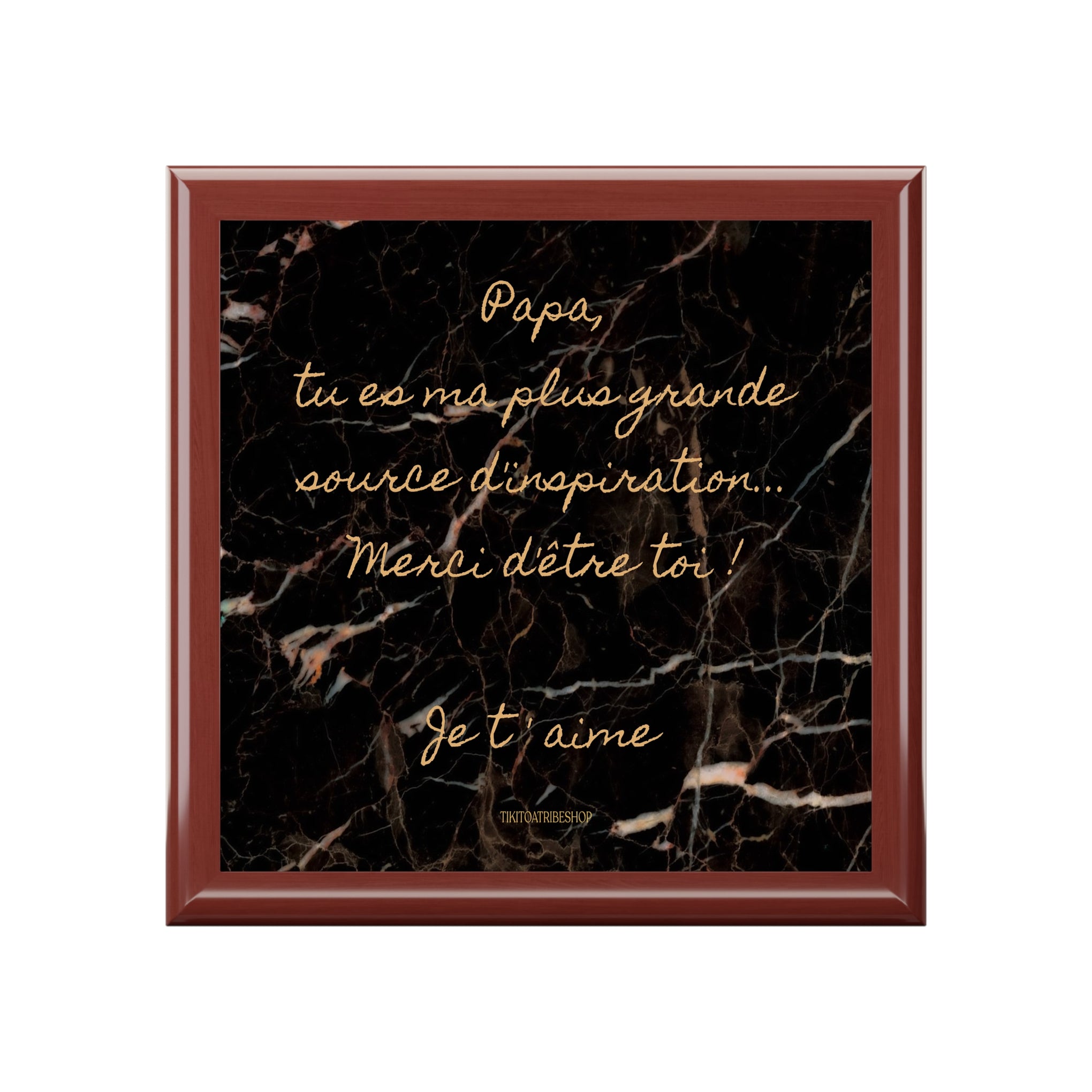 Autrefois symbole de transmission, la boîte à bijoux est aujourd’hui un objet chargé d’émotion. Chez TIKI TOA TRIBE SHOP, elle devient un véritable message d’amour, pensé pour dire “je t’aime”, célébrer la famille et exprimer tout l’amour porté à son papa. Un objet utile, beau et plein de sens, à garder près de soi chaque jour.