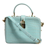 DOLCE & GABBANA - Sac Épaule Vert Menthe Cuir Croco Embossé
