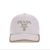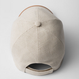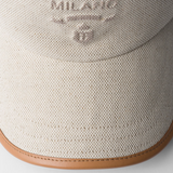 PRADA : Casquette Baseball en Lin MĂ©langĂ© avec Logo en Relief â Beige & Finitions Cuir â Made in Italy