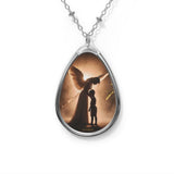 • Un pendentif inspirĂ© de la foi, reprĂ©sentant un ange protecteur guidant doucement un petit garçon sur le sentier de la vie.