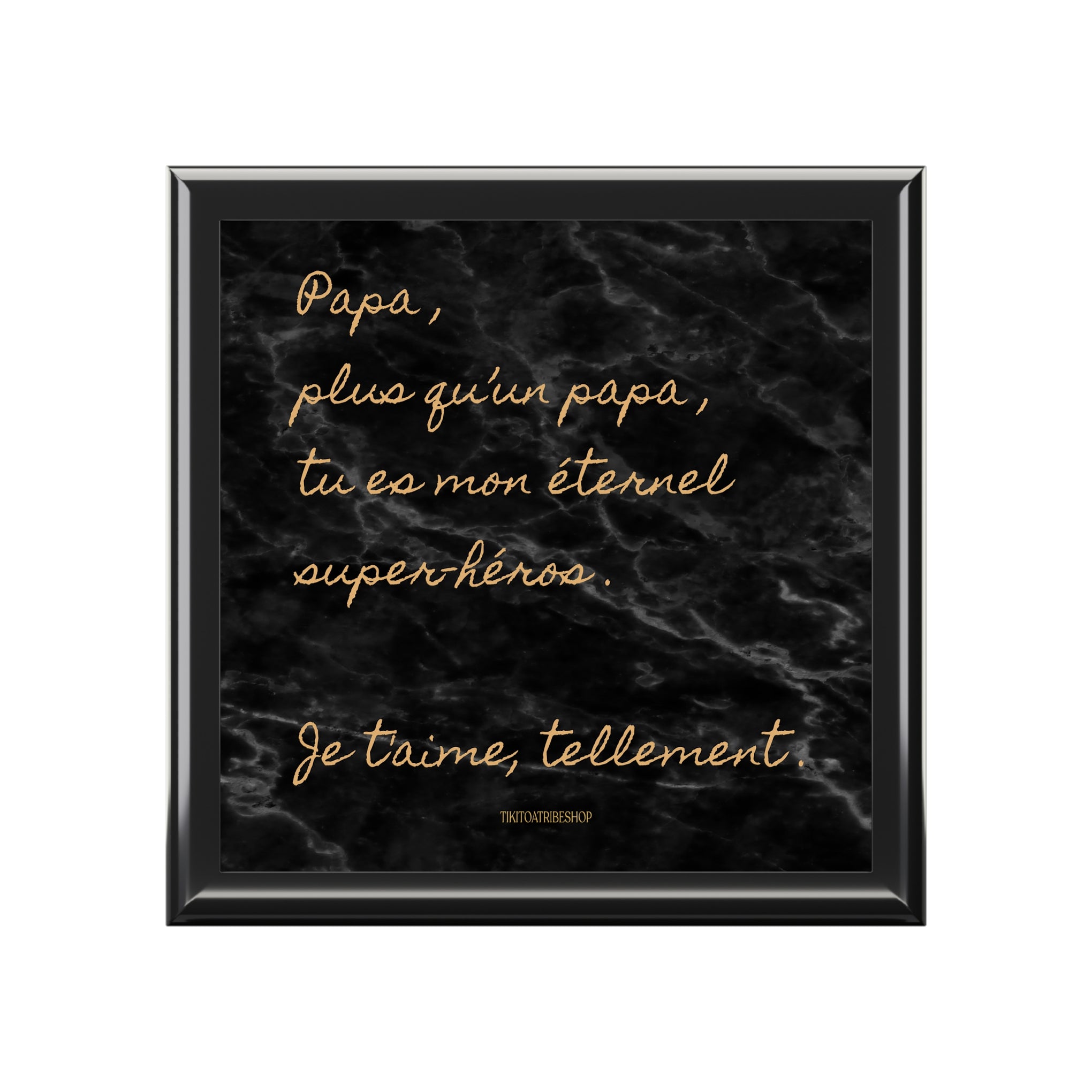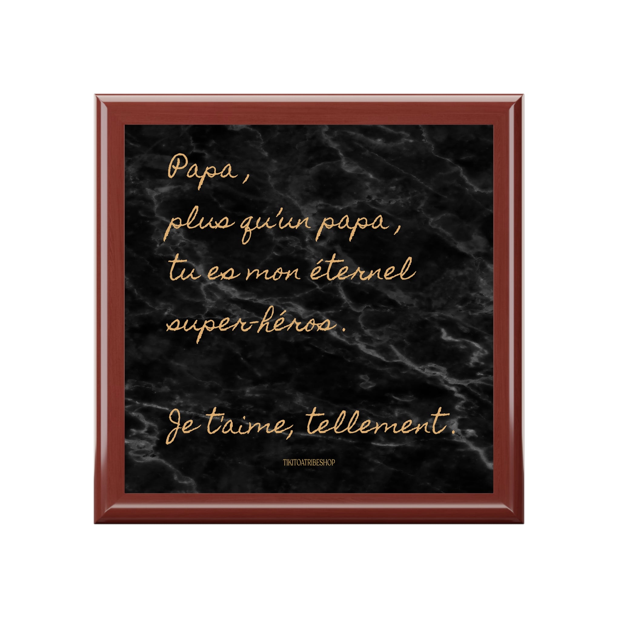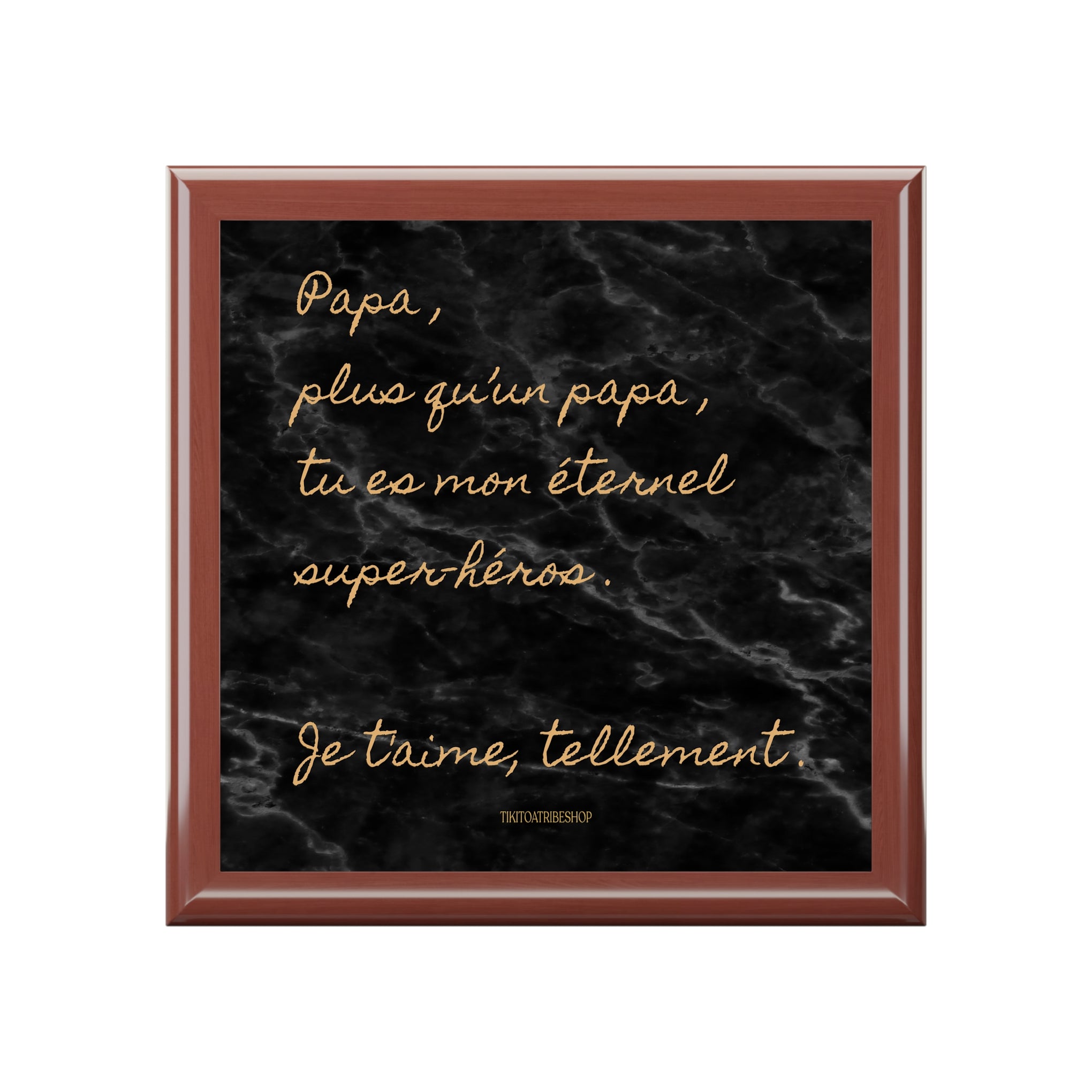Autrefois symbole de transmission, la boîte à bijoux est aujourd’hui un objet chargé d’émotion. Chez TIKI TOA TRIBE SHOP, elle devient un véritable message d’amour, pensé pour dire “je t’aime”, célébrer la famille et exprimer tout l’amour porté à son papa. Un objet utile, beau et plein de sens, à garder près de soi chaque jour.